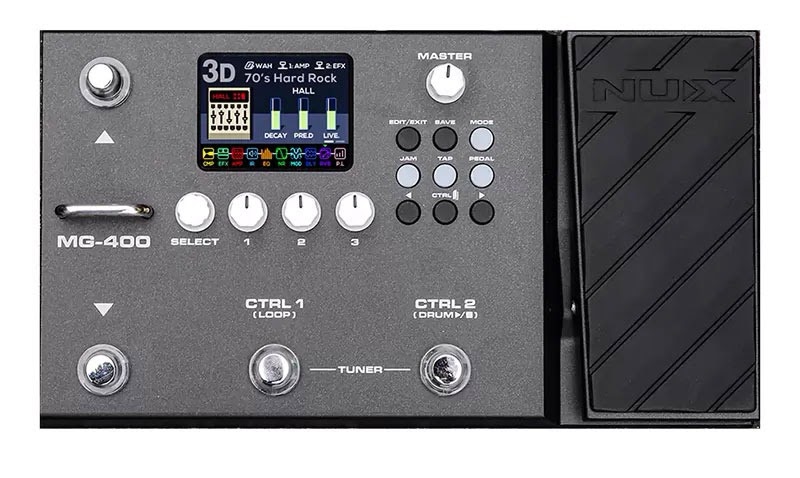 Nux MG-400 — это полноценный процессор эффектов, похожий на своего младшего брата MG-300. MG-400 оснащен 2 мощным чипами цифровой обработки сигнала для алгоритма моделирования усилителей на основе стратегии "белого ящика" высокой четкости (TS/AC-HD) и пост-эффектов Core-Image.
