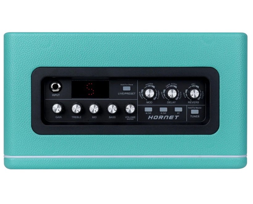 Комбоусилитель серии Hornet имеет два режима управления, а именно режим LIVE (параметры WYSIWYG) и PRESET (параметры могут быть сохранены в виде предустановок). Модель имеет регулируемое усиление, трехполосный эквалайзер и регуляторы громкости, а также модули задержки и реверберации, которыми можно независимо управлять с помощью функции TAP Tempo в реальном времени. Кроме того, серия Hornet имеет встроенный высокочувствительный тюнер и функцию воспроизведения Bluetooth с регулируемым уровнем громкости, а также разъем для наушников для бесшумных занятий.