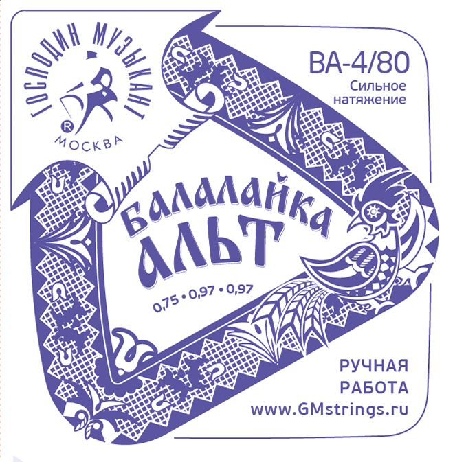 BA4/80 Комплект струн для балалайки-альт (сталь+Л-80), Господин Музыкант