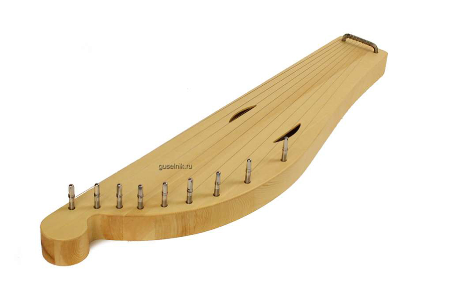 Гусли «Ладья» 9 струн долблёные и хвойных породы древесины. Имеют ладную форму и звук, позволяют получить низкое, альтовое и даже басовое звучание.
