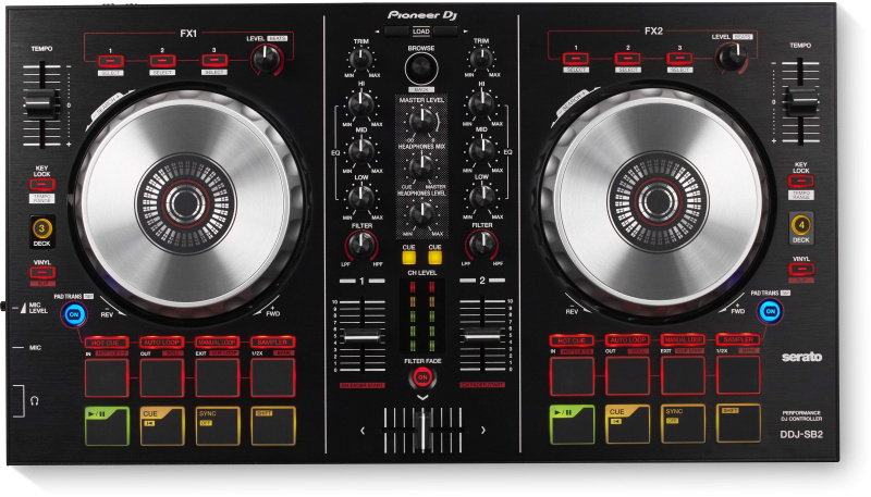 PIONEER DDJ-SB2 представляет собой двухканальный портативный контроллер для SERATO. Контроллер DDJ-SB2 для ди-джеев объединил в себе многие преимущества популярных, предшествующих моделей. Контроллер обладает широким функционалом, отличается удобным управлением и чрезвычайно высоким качеством выдаваемого звука. Одним из важных достоинств контроллера является простое, интуитивно понятное управление. Есть прочные 128-миллиметровые джоги из алюминия с предельно низкой задержкой, на каждой деке есть по 4 performance-пэда с режимами Hot Cue, Manual Loop, Auto Loop и Sampler. Также контроллер предлагает 2 секции эффектов с 3 кнопками и регулятором на каждый эффект, кроссфейдер с функцией Filter Fade.