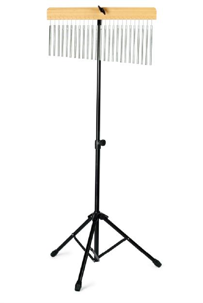 Чимес на стойке (хромированные трубочки на деревянном основании, черная металлическая стойка.