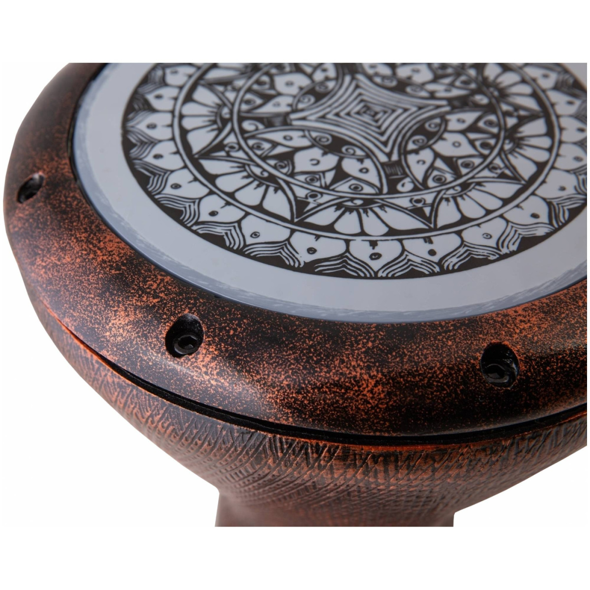 YUKA DBF8-17CT Думбек размера 11" x 17" сделан из синтетического волокна и имеет мембрану из пластика, в связи с чем он имеет легкий вес и позволяет использовать барабан на улице, не боясь дождя и даже снега. Этот думбек – идеальный походный вариант обладающий полным пространным звуком и легкостью конструкции. У думбека DBF8-17CT уникальный медным цветом и текстурой. У него не только уникальная форма и цвет, он также обладает уникальными акустическими свойствами, потрясающим резонансом, невероятными басами и ударным тоном (слэпом).