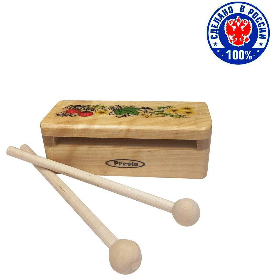 Коробочку, причем не одну можно встретить в любом музыкальном коллективе. Этот инструмент никогда не бывает лишним и техника игры на нем обычно не вызывает вопросов: ритмичные удары колотушкой различной интенсивности и силы по поверхности коробочки создадут необходимый музыкальный рисунок.