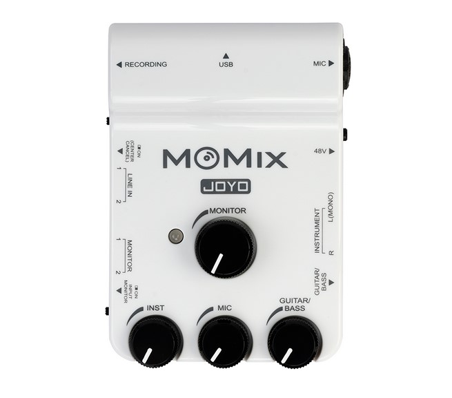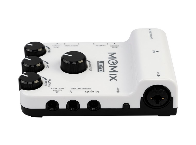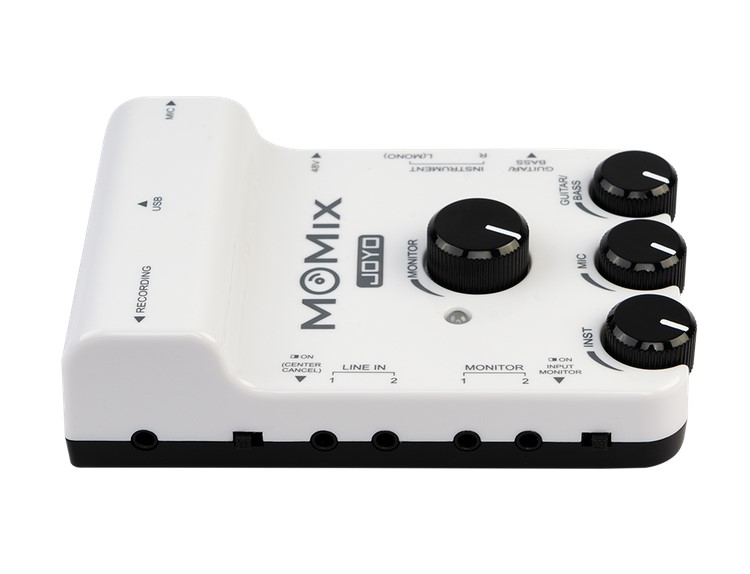 MOMIX — это микшер для записи и потокового вещания с портативных устройств, вы можете подключить к нему микрофон, гитары, клавишные, электронные ударные установки и многое другое. Он оснащен 2 линейными стереовходами для мультимедийного оборудования. Просто настройте громкость инструментов и вокала на MOMIX, подключите к нему наушники или усилитель для полного контроля.