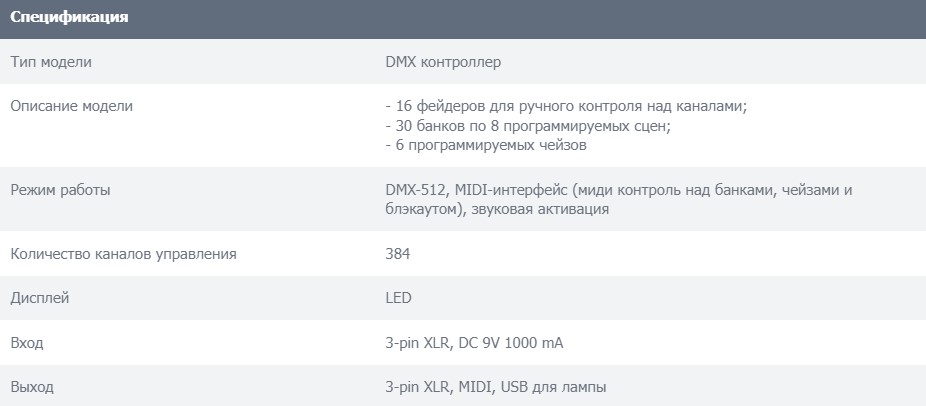 Описание модели: - 16 фейдеров для ручного контроля над каналами;