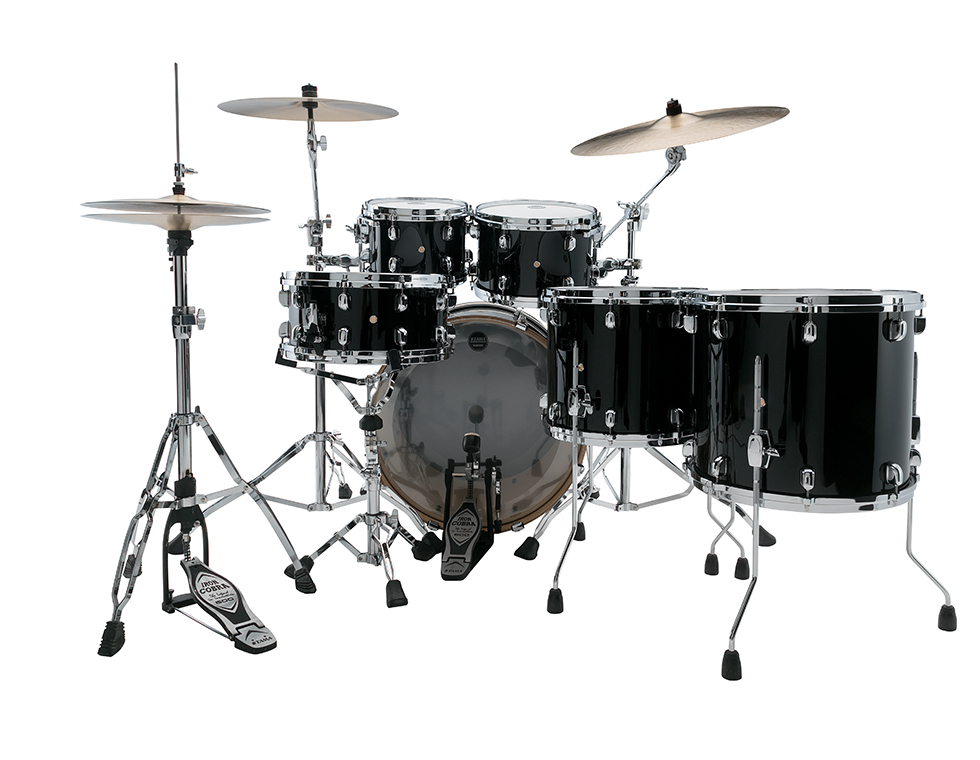 Ударная установка из 5-ти барабанов (22"х16" бас барабан, 10"x7" и 12"x8" том тома, 14"x12" и 16"x14" напольные тома, MC69 крепление тома - 2шт.) , цвет черный глянцевый, клён/берёза