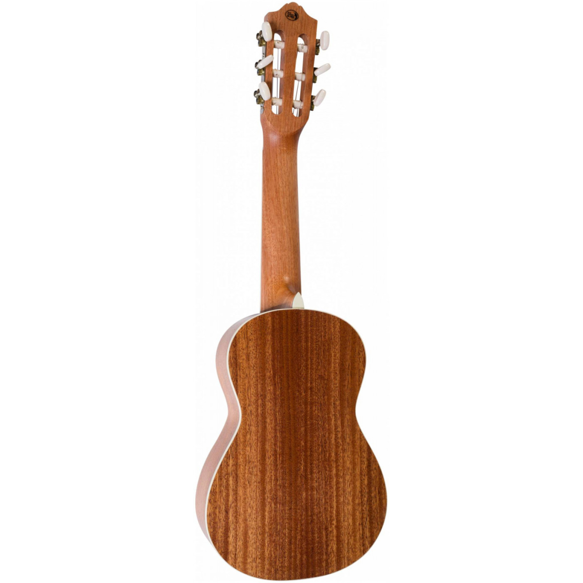 Несмотря на компактный размер, по игровым характеристикам и качеству производства она не уступает полноразмерным инструментам. Верхняя дека выполнена из ели, нижняя дека и обечайка из сапеле.