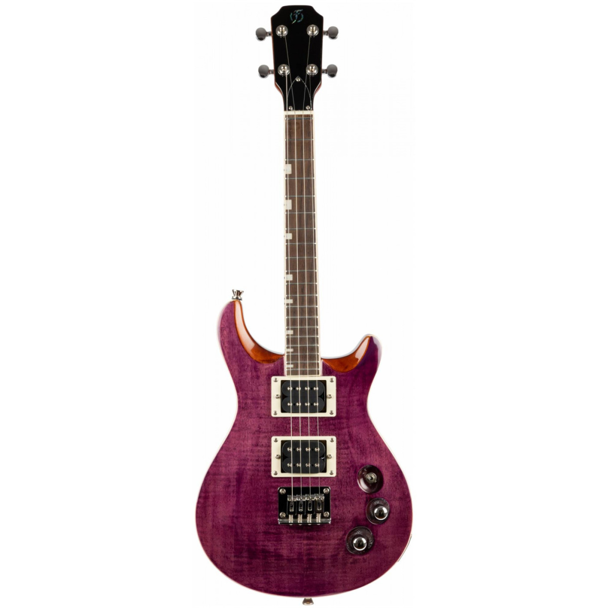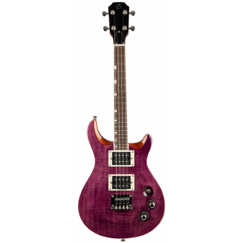 Цельнокорпусная электроукулеле Flight Vanguard прозрачного фиолетового цвета в размере тенор – инструмент со стальными струнами и двойным вырезом для доступа к верхним ладам, открывающий полный спектр звуковых возможностей настоящей электроукулеле от бренда Flight. Эта укулеле из огненного клена с прозрачным фиолетовым покрытием и корпусом и грифом из красного дерева – настоящее произведение искусства.