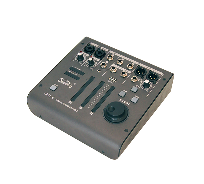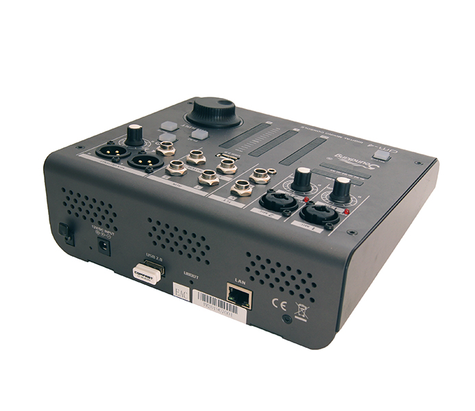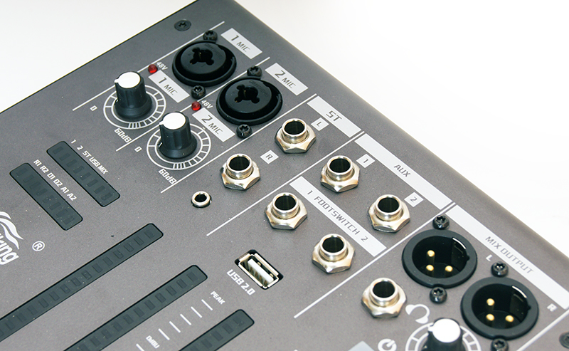 Фантомное питание, 4-полосный эквалайзер, фильтр высоких частот, компрессор, эффекты и пороговый шумоподавитель на всех входах.