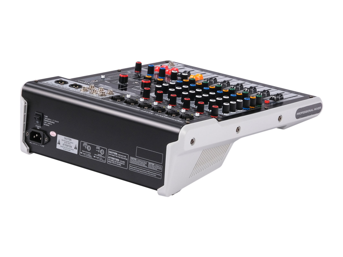 Профессиональный микшер среднего размера с ультра-малошумящим дискретным микрофонным предусилителем и фантомным питанием 48 В.
