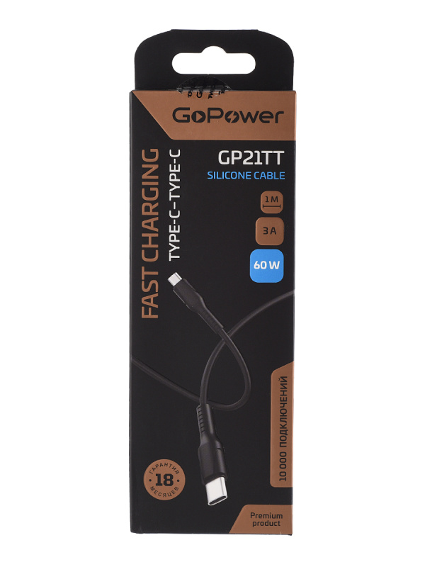 00-00028382 Кабель GP21TT Type-C (m)-Type-C (m) 3.0A 60W силикон черный, GoPower