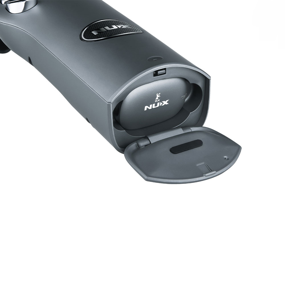 NES-1 сам по себе является беспроводным передатчиком, и в нижней части инструмента был спроектиран магнитный отсек для хранения беспроводного приемника, который также используется для его подзарядки! Просто выньте ресивер, включите функцию беспроводной связи, подключите его к усилителю или микшеру и начните играть без проводов до 4,5 часов без подзарядки.