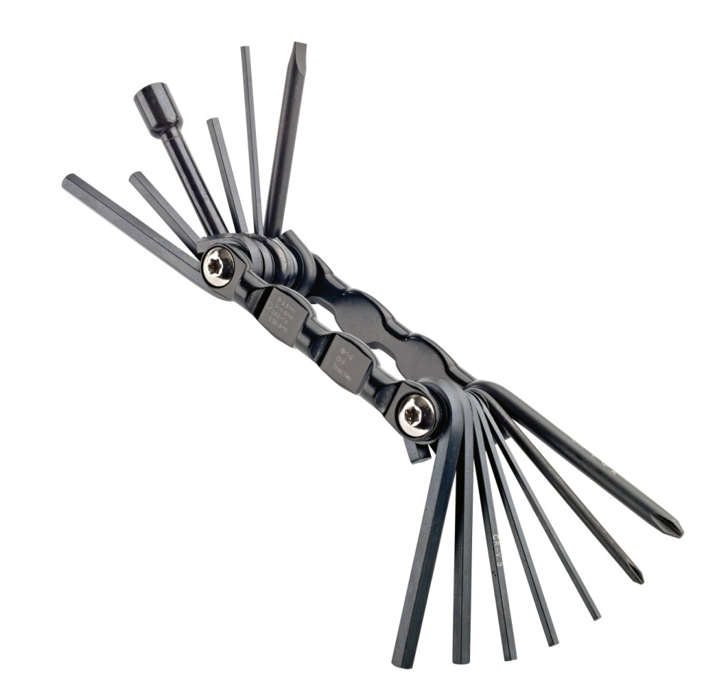 Универсальный барабанный инструмент, состоящий из шестигранных ключей дюймовых (3/32" - 1/8" - 5/32" и 3/16") и метрических (2 - 2,5 - 3 - 4 и 5 мм).