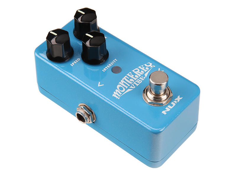 Педаль NUX Monterey Vibe призвана воссоздать всю сложность психоделического рока 1960-70-ых. Она может использоваться как эффект хорус, динамик Лесли или фазер. Вместо оригинальной схемы из пульсирующей лампы и 4 фоторезисторов, в педали используется мощный процессор обработки звукового сигнала 32-bit, позволяющий имитировать сложные физические явления в оригинальной аналоговой схеме.