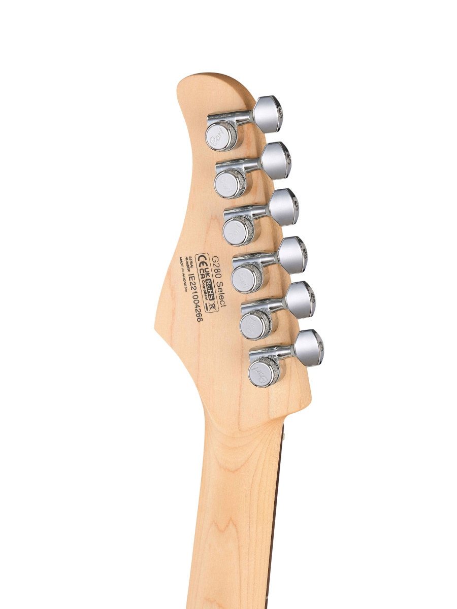 Новая модель G280 Select является обновленным продолжением популярной G280DX, с добавленными перламутровой защитной накладкой, накладкой грифа из палисандра и хамбакером Voiced Tone VTH-77 с металлической крышкой для изысканного внешнего вида и высокого качества сборки. G280 Select разработана с наилучшей возможной играбельностью и звуковыми характеристиками. Корпус гитары изготовлен из ольхи с верхней частью из волнистого клена, звукосниматели HSS обеспечивают универсальное звучание, которое подойдет как для классических, так и для современных музыкальных жанров.