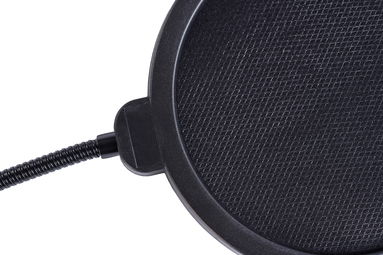 Крепится поп-фильтр при помощи струбцины к микрофонной стойке или держателю. Длина легко регулируемой гусиной шеи составляет 37,5 см, благодаря чему ветрозащиту можно выставить в любом удобном положении. Поп-фильтр - незаменимый аксессуар для подкастеров, дикторов, блогеров, стримеров и вокалистов.