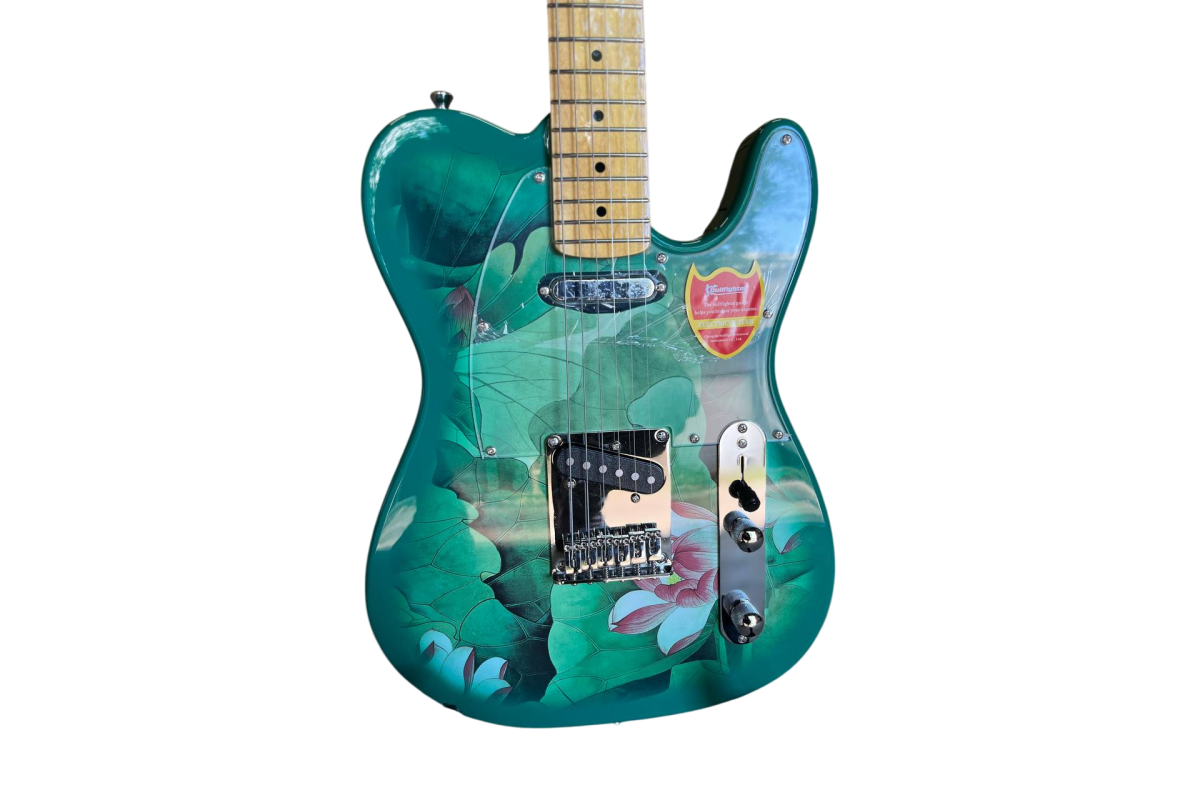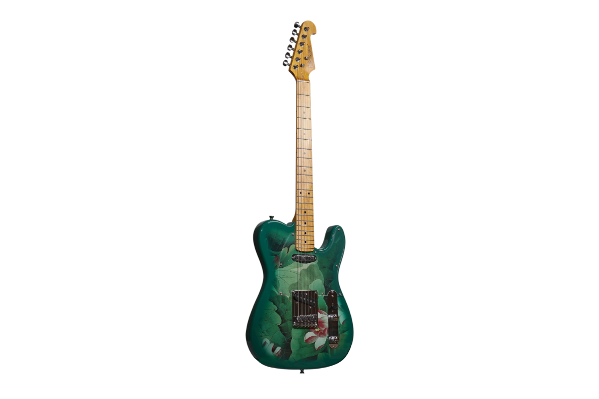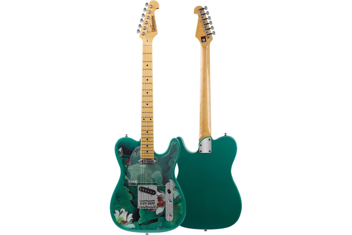 BULLFIGHTER D-133N TL Style — электрогитара, которая сочетает в себе классическую эстетику телекастера с эксклюзивным дизайном и игровым комфортом. Модель с уникальным принтом «Лотос и листья» выделяется на сцене и в студии, предлагая музыкантам не только визуальную индивидуальность, но и характерное телекастерное звучание с новой подачей.