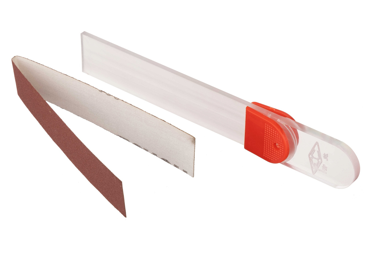 На основу из пропилена или дерева с двух сторон наклеена шкурка на тканевой основе. На первой стороне R150-P15ak, на второй стороне R100-P15ak.