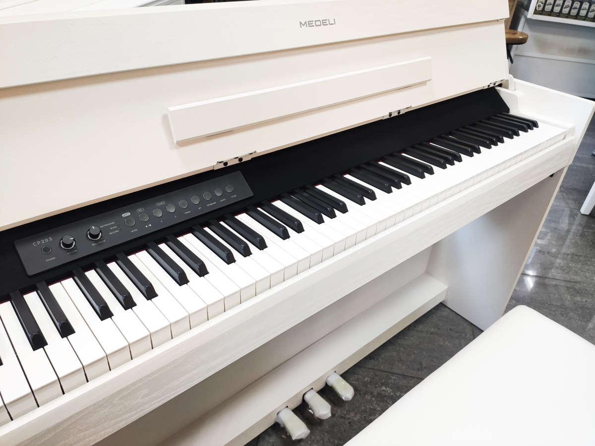 CP203 сочетает в себе весь опыт создания цифровых фортепиано Medeli в компактном корпусе, от флагманского звука немецкого рояля до 192-нотной полифонии, от совместимости с приложением PianoToolbox до всех параметров звука фортепиано, таких как шум молоточков или резонанс струн. Недавно разработанная компактная клавиатура с градуированным действием (GAC) предлагает полностью взвешенный молоточковый механизм в самом компактном размере. Кроме того, новый эксклюзивный звук японского рояля, тщательно записанные новые встроенные песни и новый педальный блок с поддержкой полудемпфирования — все это отражает эволюцию Medeli во всех направлениях.