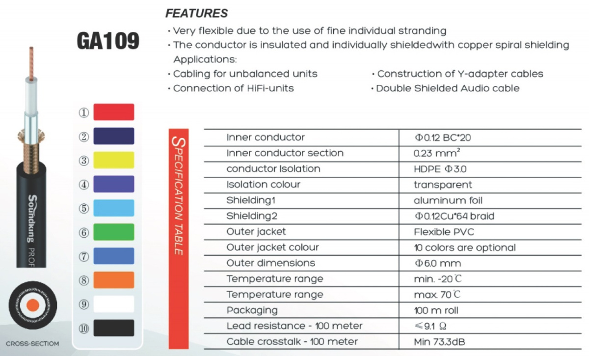 GA109 Кабель инструментальный, 1м, черный, бесшумный, Soundking