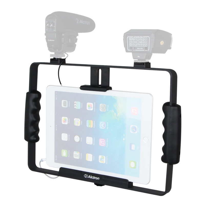 Держатель VS22 разработан для планшетов и смартфонов и предназначен для режиссеров, преподавателей, студентов и любителей съемки. Изготовленный из алюминиевого сплава и металлических стоек (приобретаются отдельно), он чрезвычайно прочен и долговечен и может выдержать любые условия съемки. Два дополнительных крепления наверху позволяют легко установить осветительное и звуковое оборудование, например микрофон и т.д. Надежное крепление для штатива подходит для любого стандартного штатива, что упрощает продолжительную съемку. VS22 поможе снимать воспоминания, которые вы хотите запечатлеть с уверенностью.
