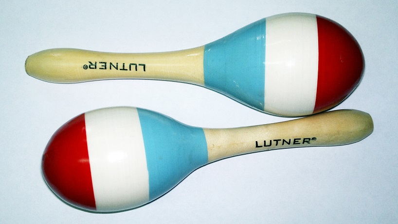 M8-2 Деревянные маракасы на ручке, разноцветный рисунок, диаметр 5,6 cм, длина 19 см. Fleet