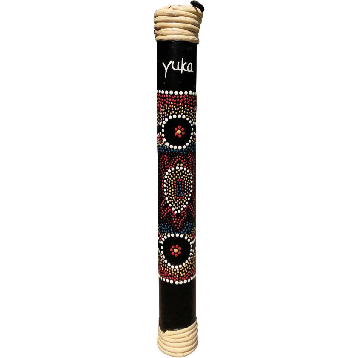 Палка Дождя YUKA RSB-40 изготовлена вручную из бамбука, в полом цилиндре пересыпаются семена, производя приятный звук, напоминающий шум дождя. Структура создана из последовательности тонких прутиков, расположенных по спирали по диаметру инструмента.