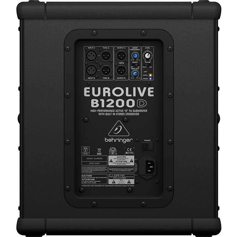 Активный сабвуфер Behringer B1200D-PRO, 500 Вт, со встроенным усилителем стерео-кроссовером и динамиком 12"