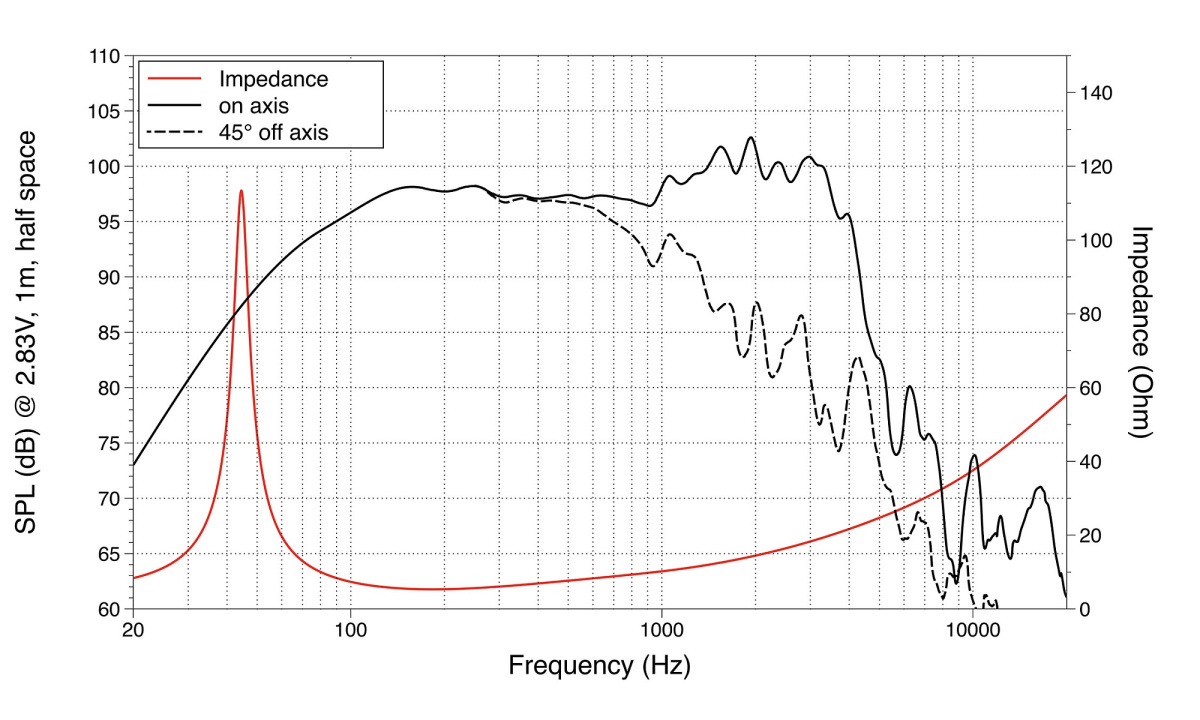 Эквивалентный объем воздуха (VAs): 146,3 л (5,17 фут3). Индуктивность звуковой катушки (Le): 0,91 мГн.