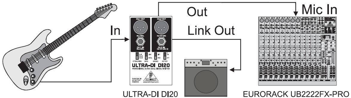 - В режиме link сигнал с канала 1 подается также на входа 2 (дополнительно к XLR-выходу)